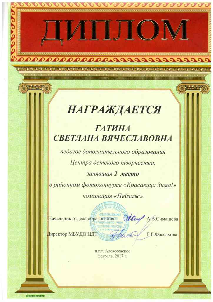 Районный конкурс "Красавица Зима!", Гатина С.В., 2 место, февраль 2017 г.