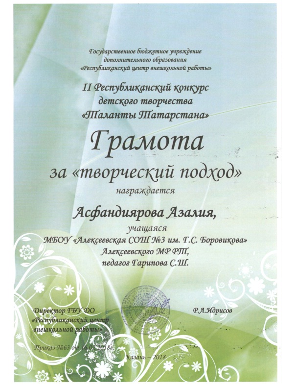 ♦ Асфандиярова Азалия, Грамота за творческий подход