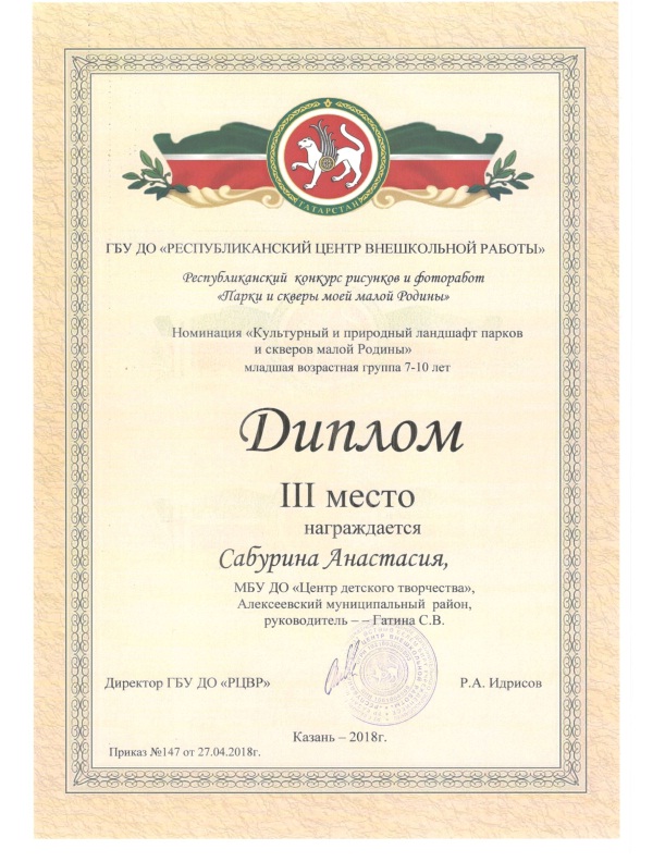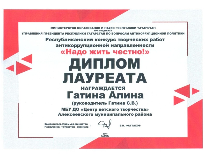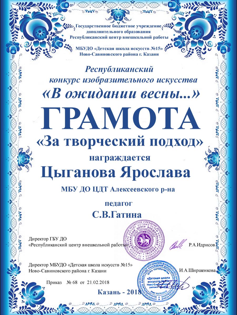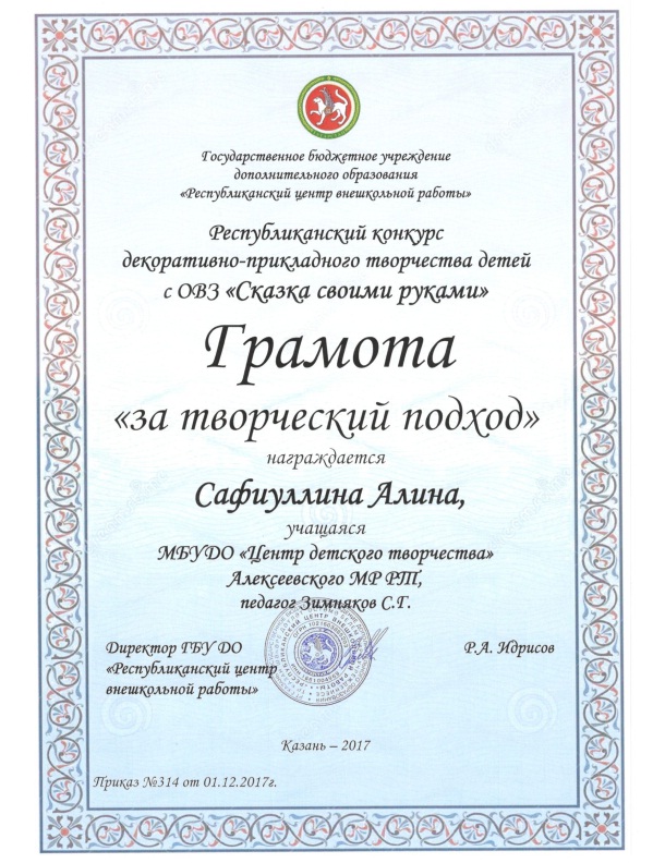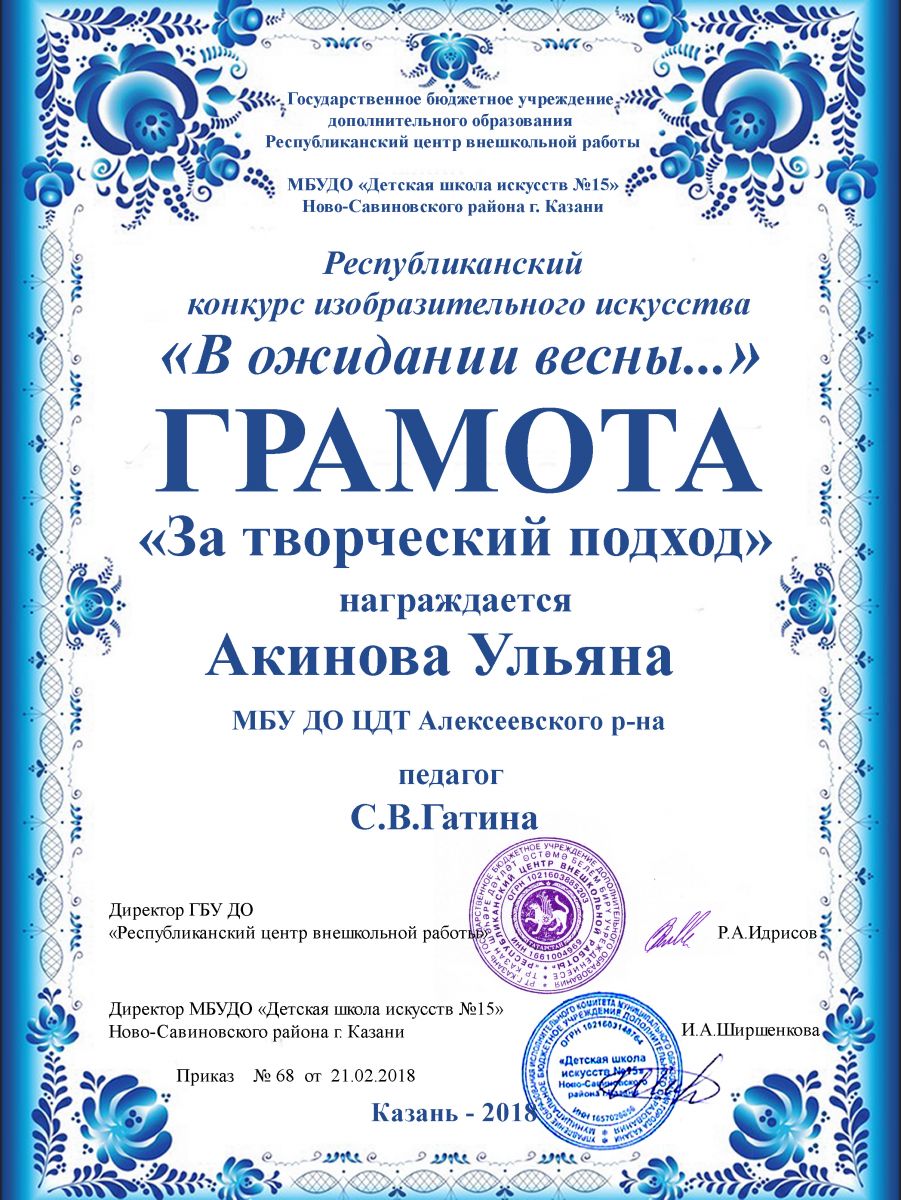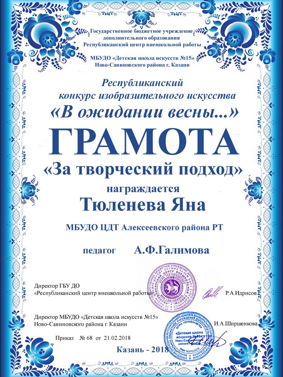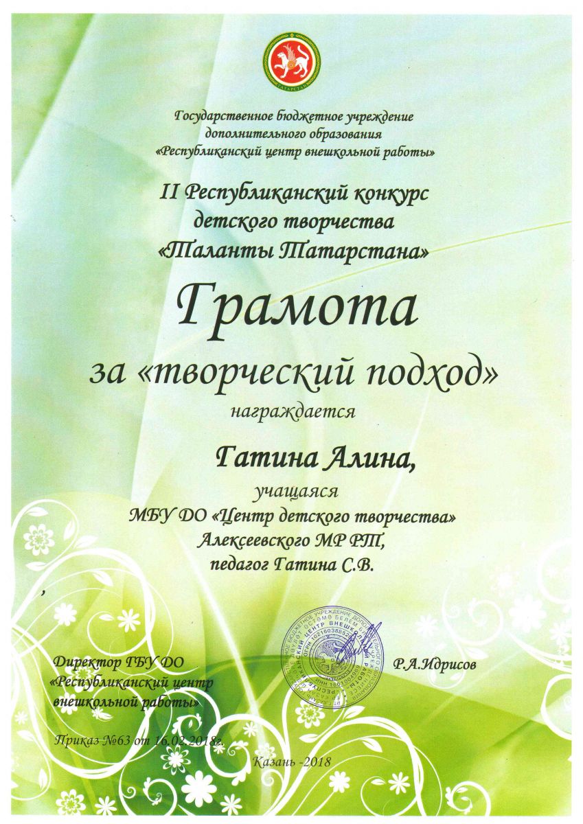♦ Гайнутдинова Алина, Грамота за творческий подход