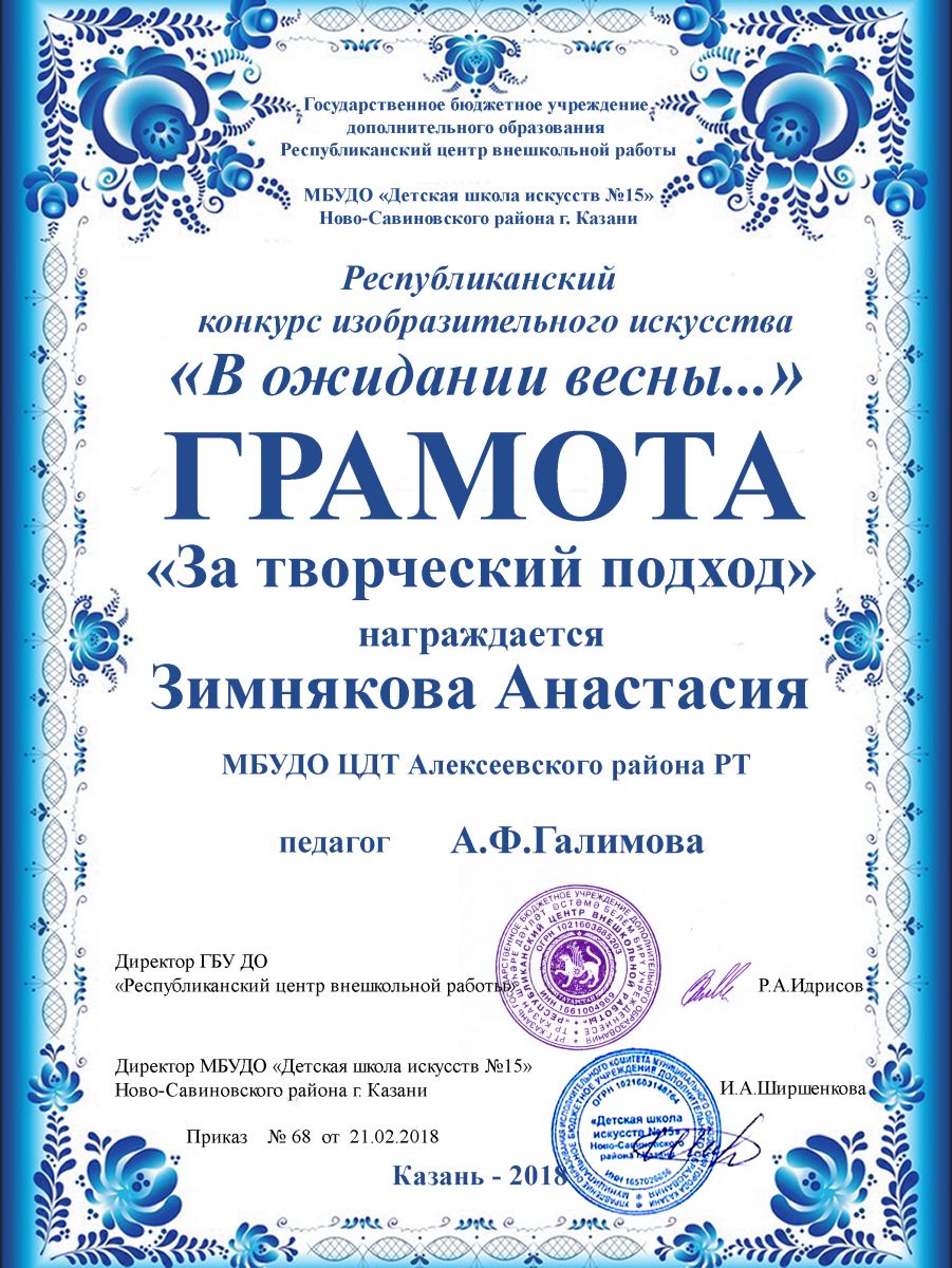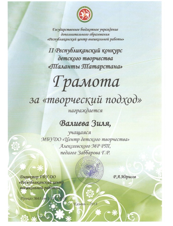 ♦ Заббарова Ильгина, Грамота за творческий подход
