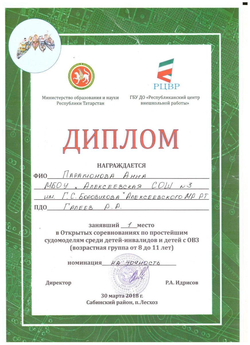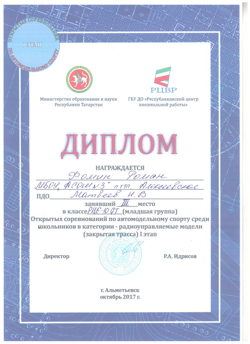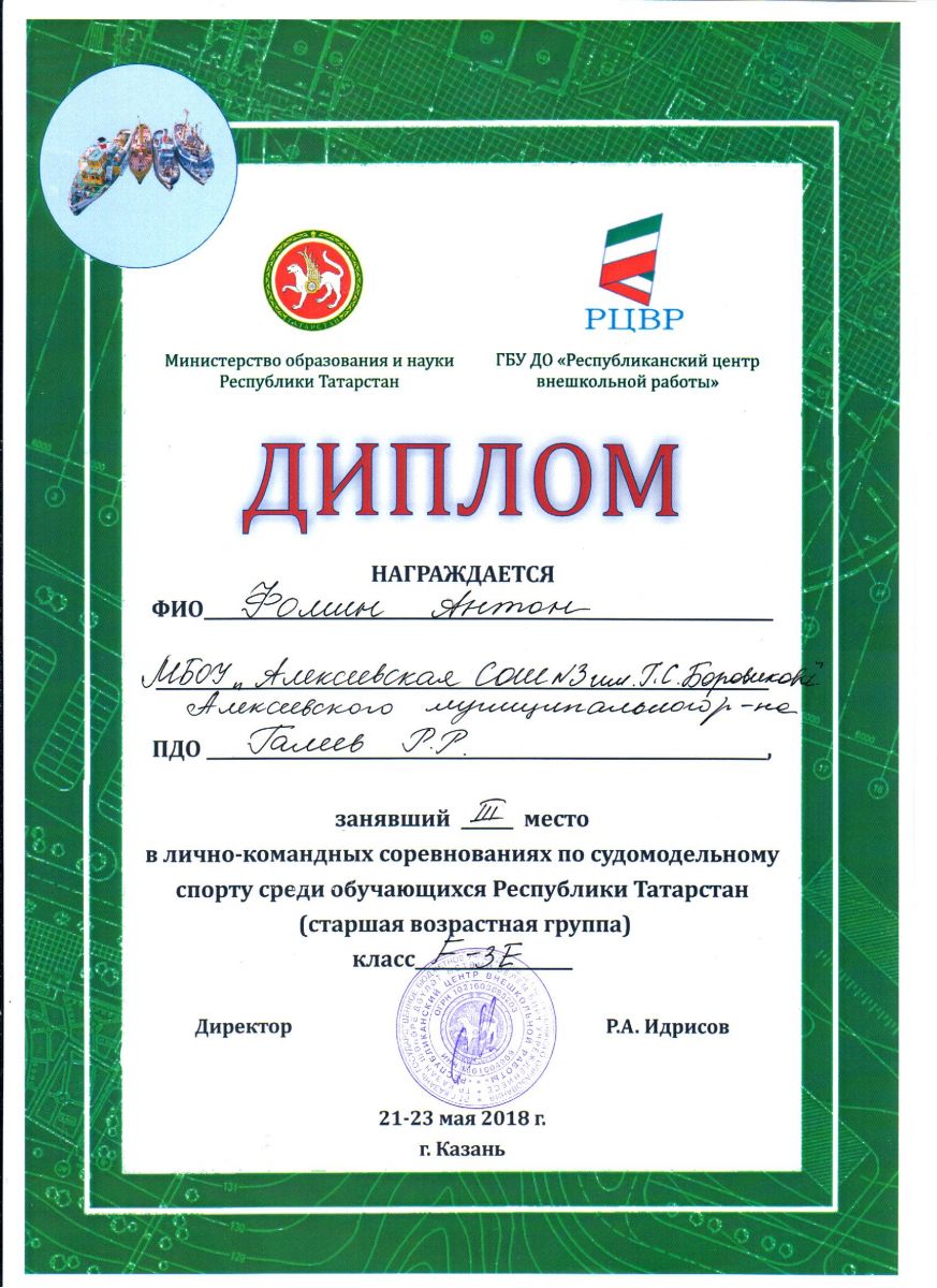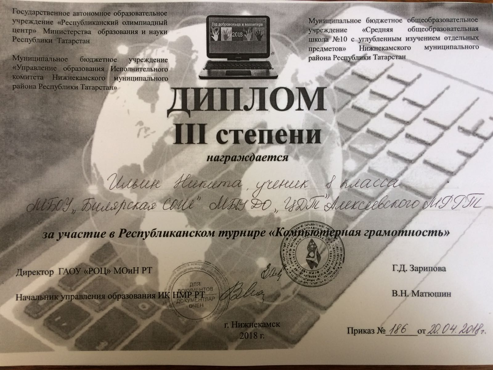 ► Республиканский турнир "Компьюьерная грамотность", Ильин Никита, Диплом 3 степени, апрель 2018