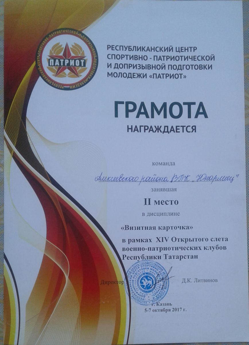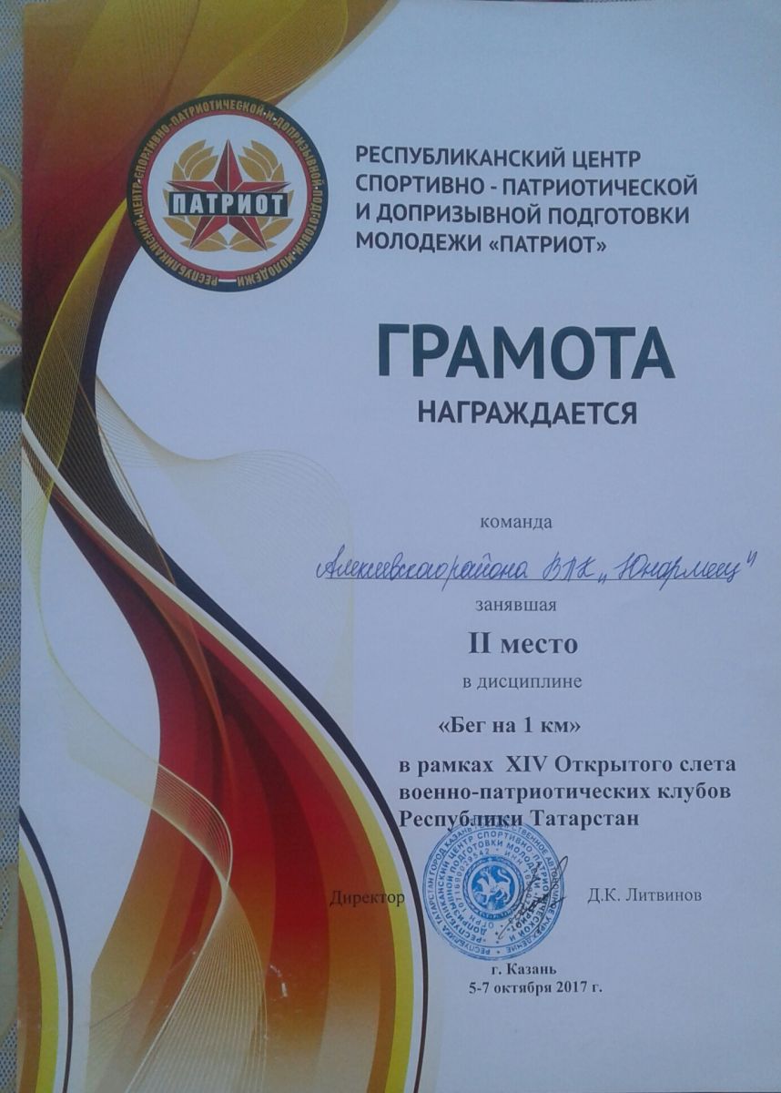 ► XIV открытый слет военно-патриотических клубов РТ, 2 место, октябрь 2017
