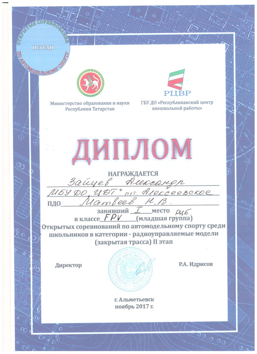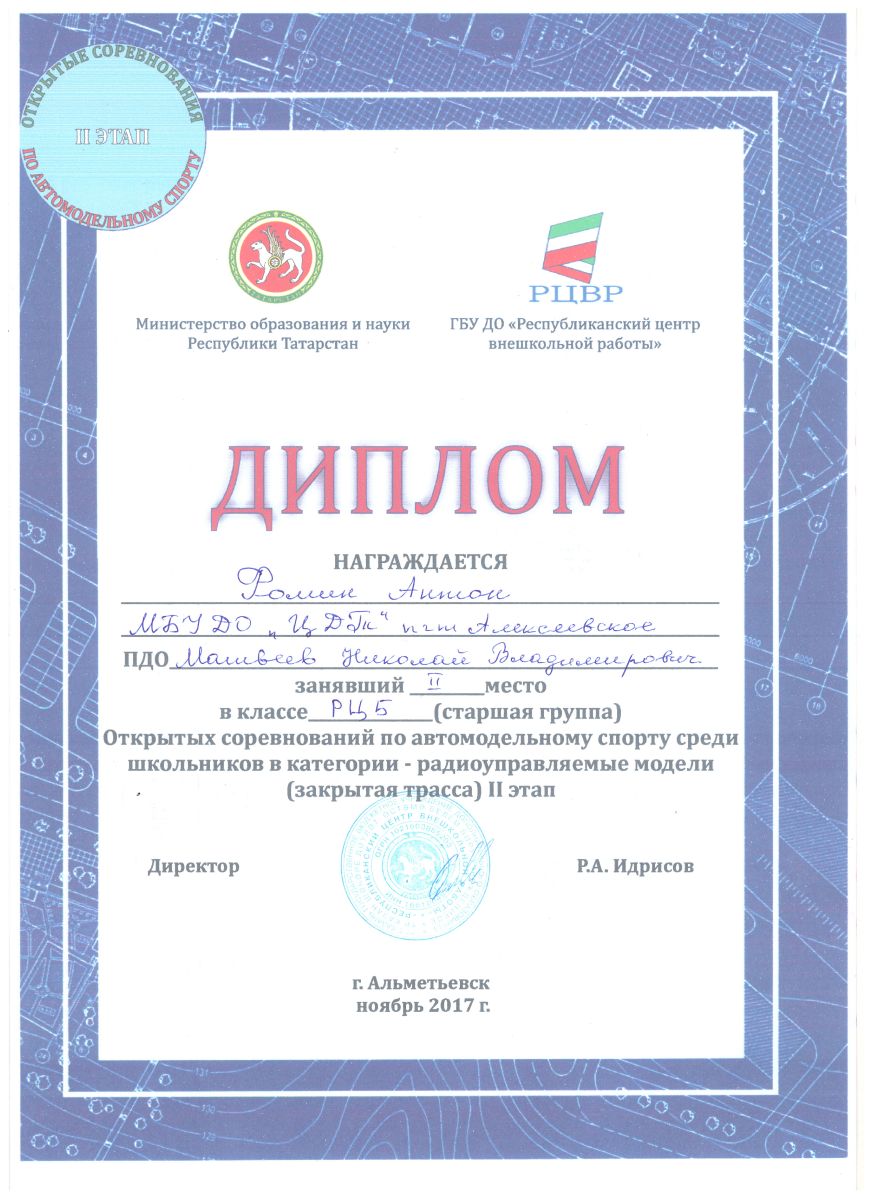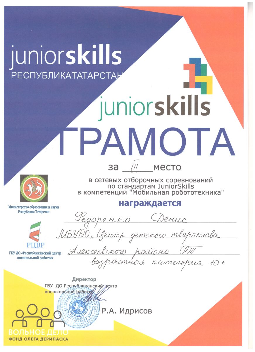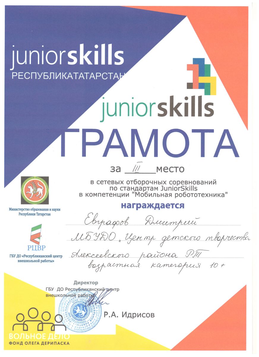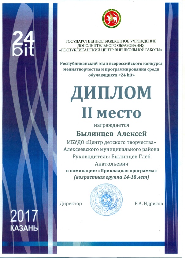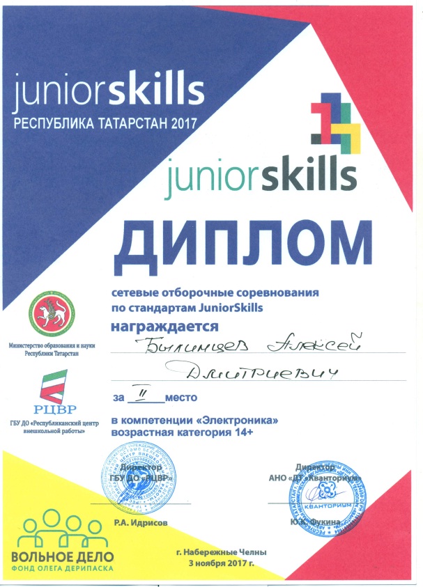 ► Сетевые отборочные соревнования по стандартам JuniorSkills, Былинцев Алексей, 2 место, ноябрь 2017