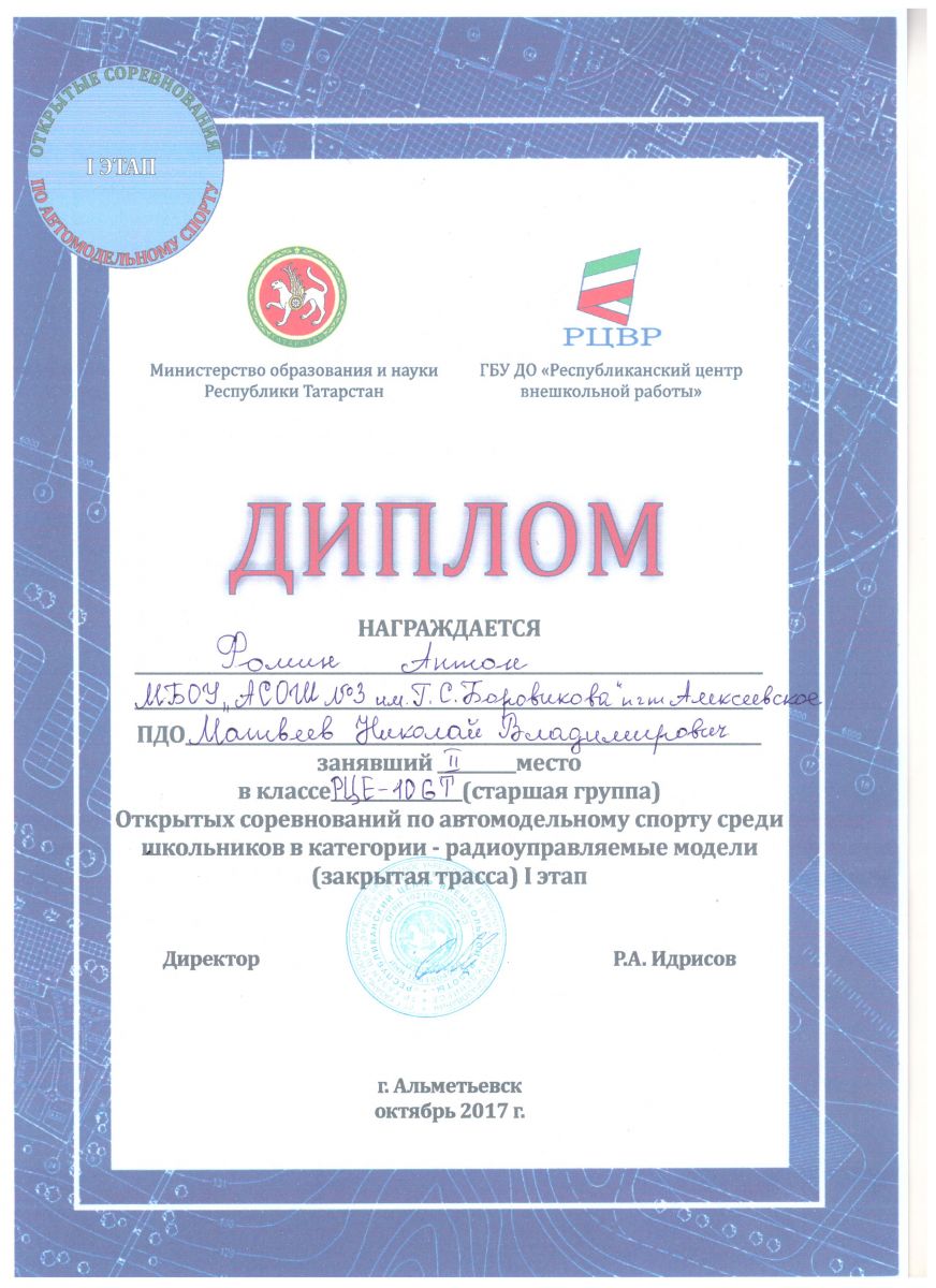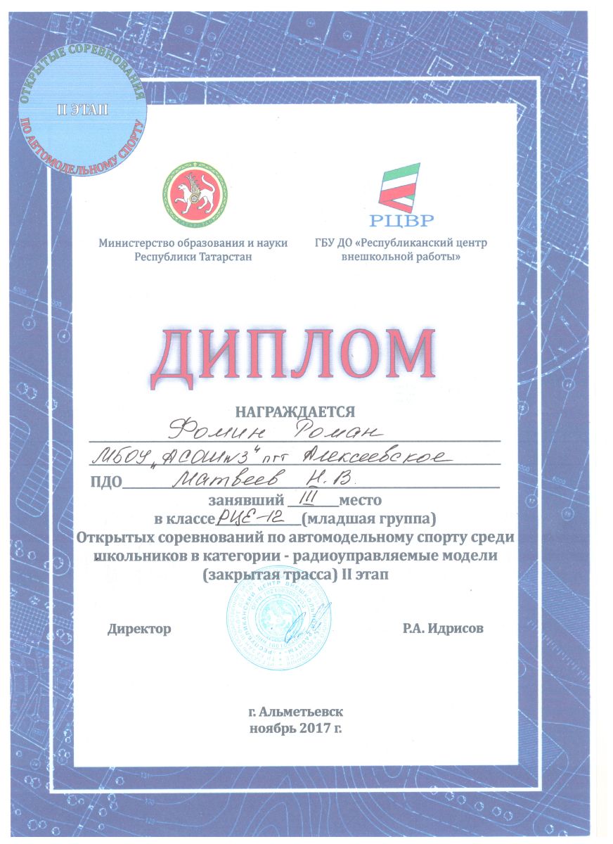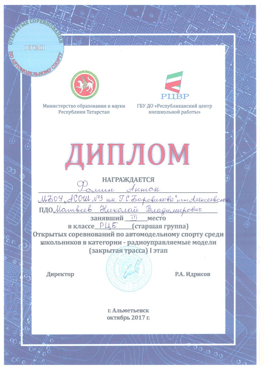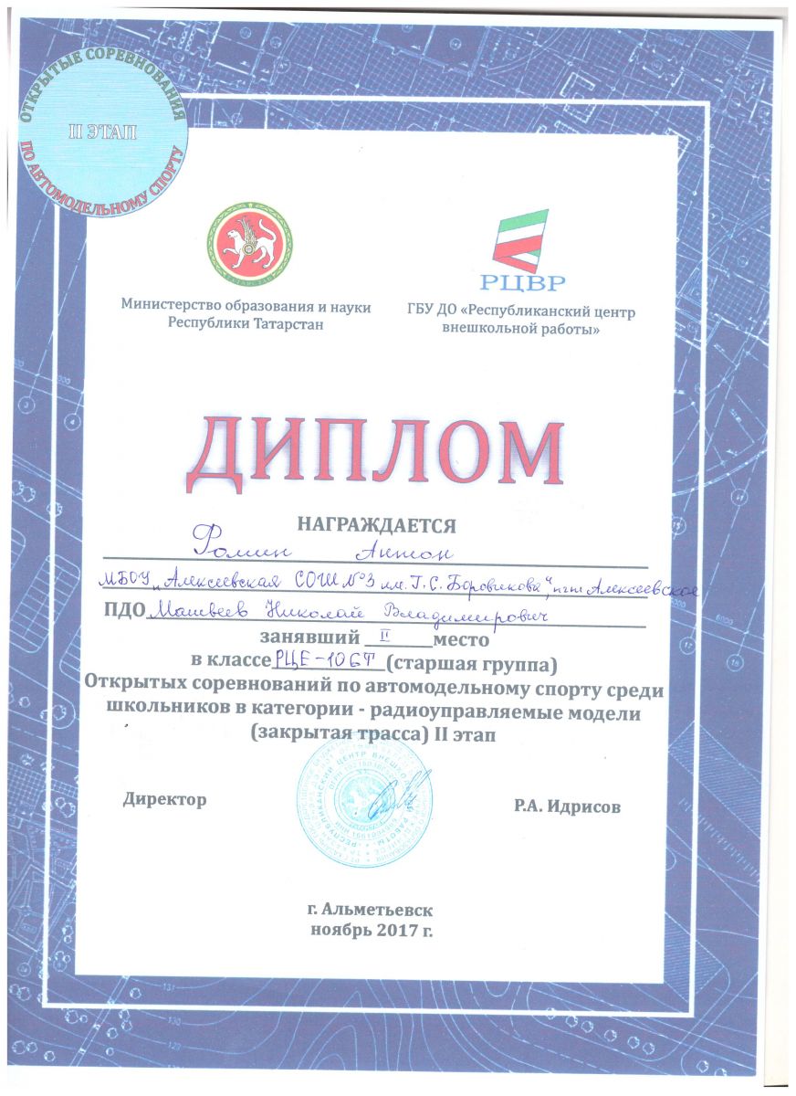 ► Сетевые отборочные соревнования по стандартам JuniorSkills, Былинцев Алексей, 2 место, ноябрь 2017