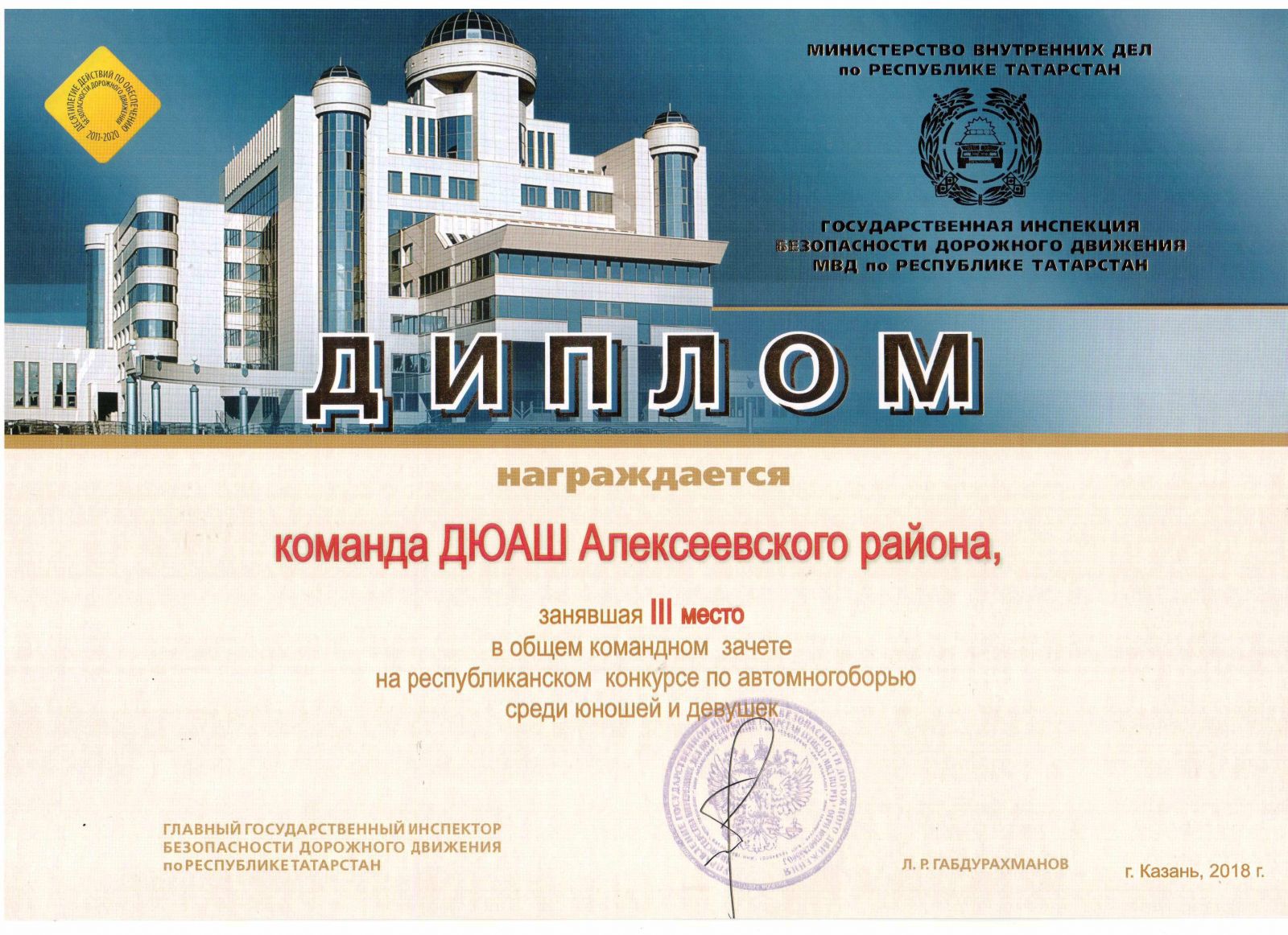 ► Республиканскитй конкурс по автомногоборью среди юношей и девушек, 3 место, май 2018