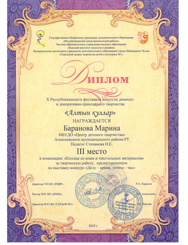 Муниципальное бюджетное учреждение дополнительного образования "Центр детского творчества" Алексеевского муниципального района Республики Татарстан / Татарстан Республикасы Алексеевск муниципаль районы «Балалар иҗат үзәге» өстәмә белем муниципаль бюджет учреждениесе