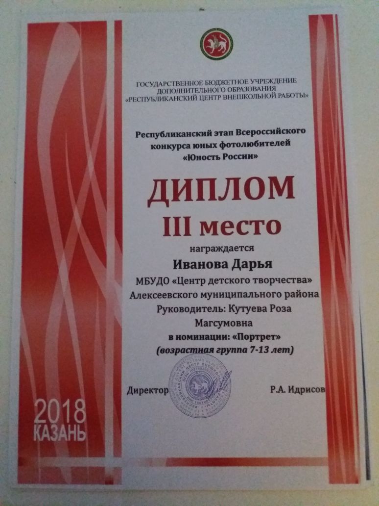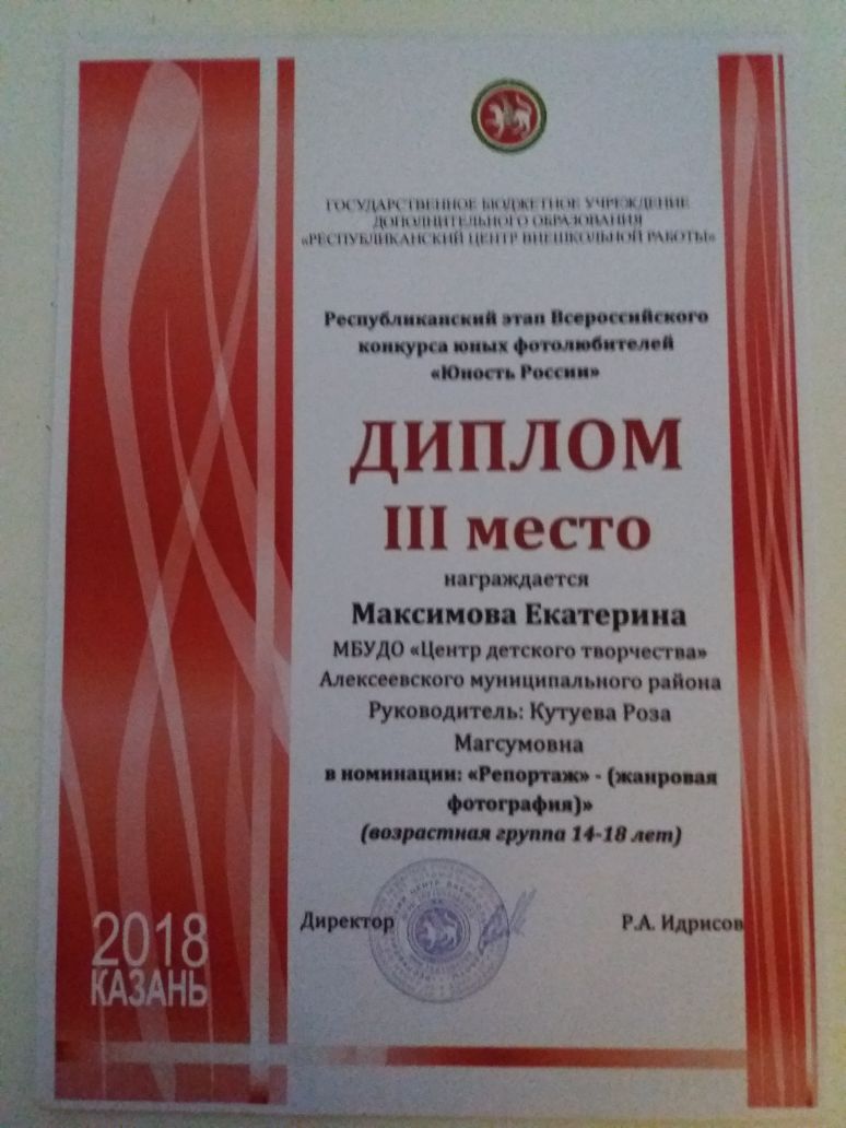 ►Республикаский этап Всероссийского конкурса юных фотолюбителей "Юность России", Максимова Катя, 3 место, март 2018