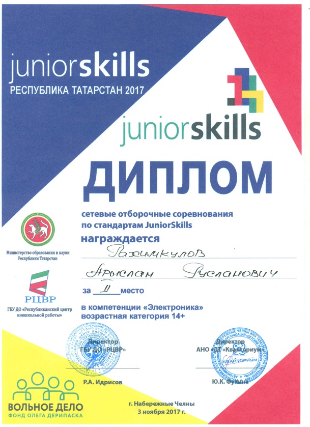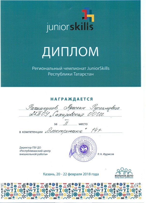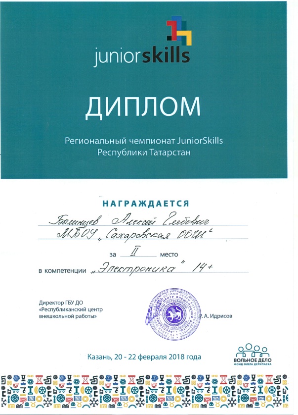► Региональный чемпионат JuniorSkills Республики Татарстан, Былинцев Алексей, 2 место, февраль 2018