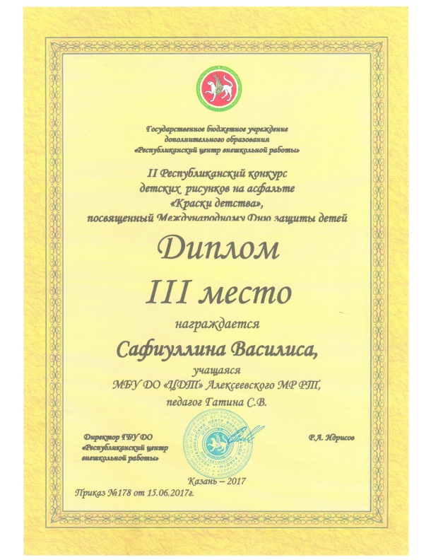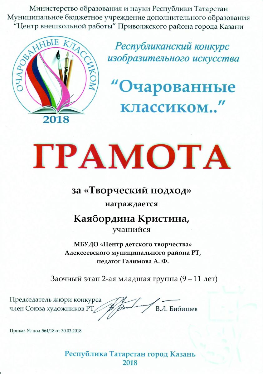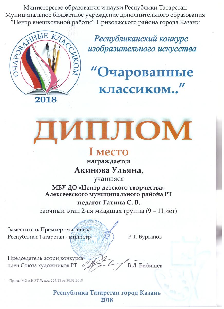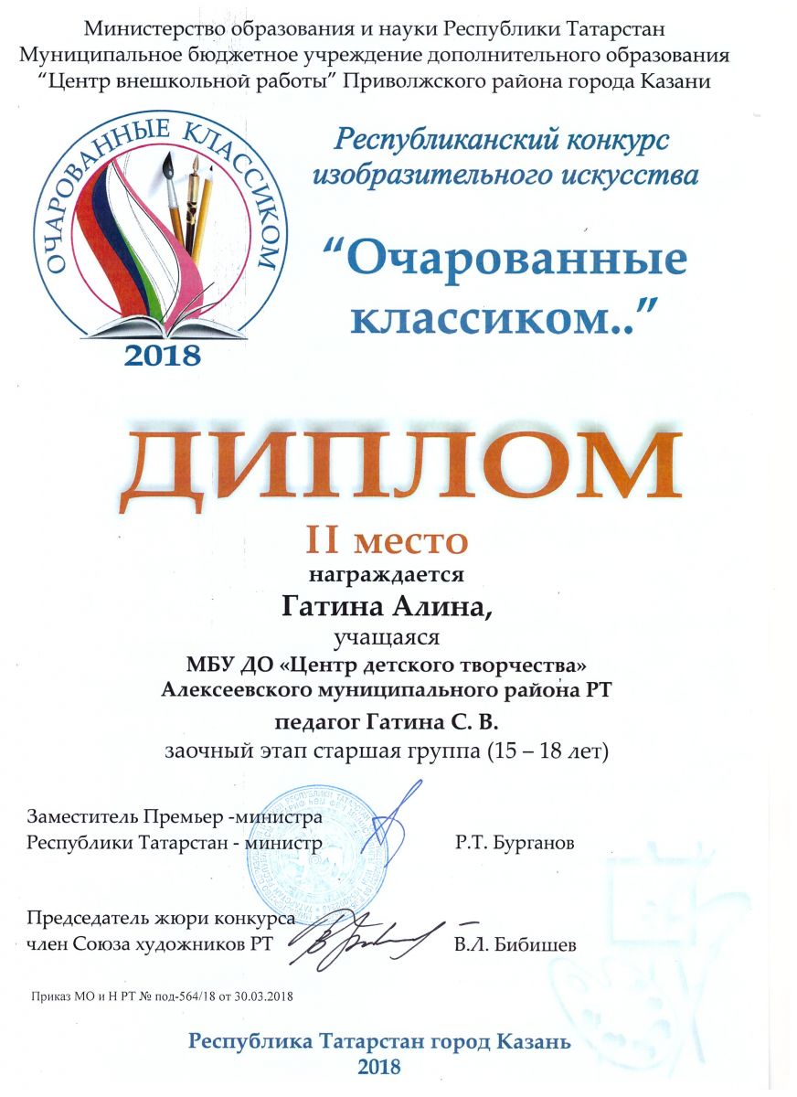 ► Республиканский конкурс изобразительного искусства "Очарованные классиком", Гатина Алина, 2 место