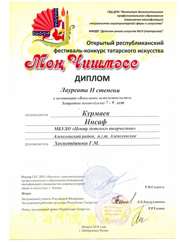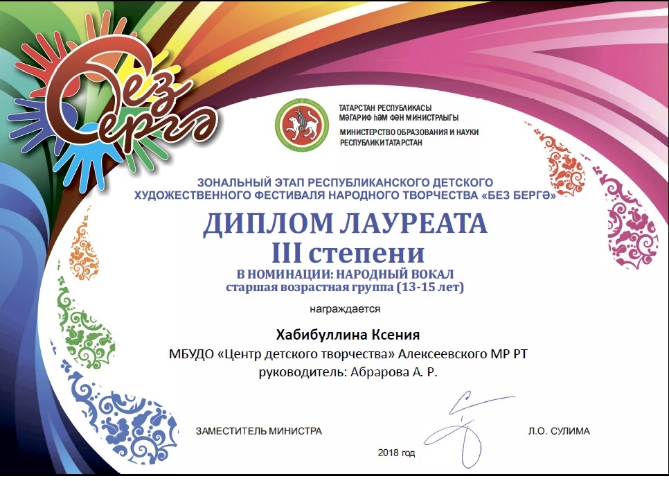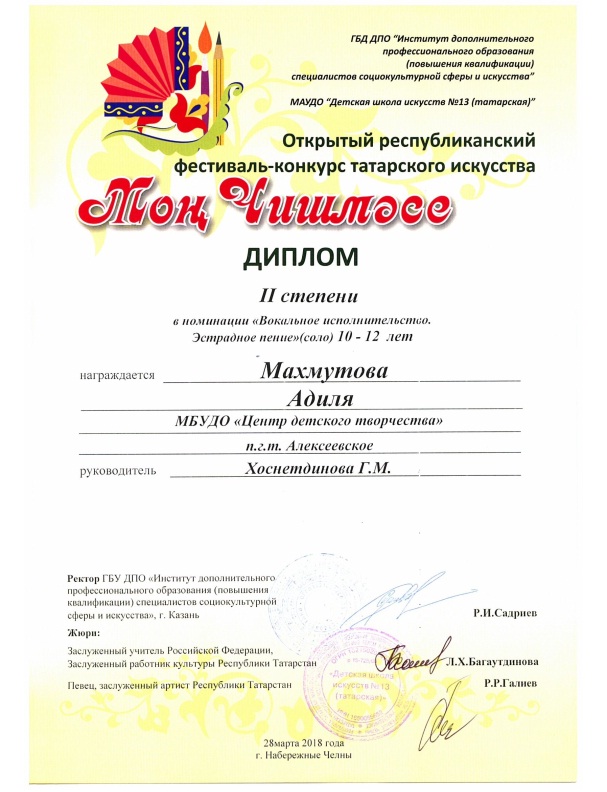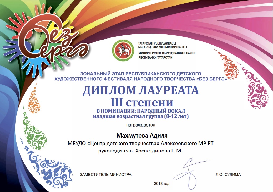 ► Зональный этап республиканского фестиваля "Без бергэ", Махмутова Аида, Диплом лауреата 3 степени