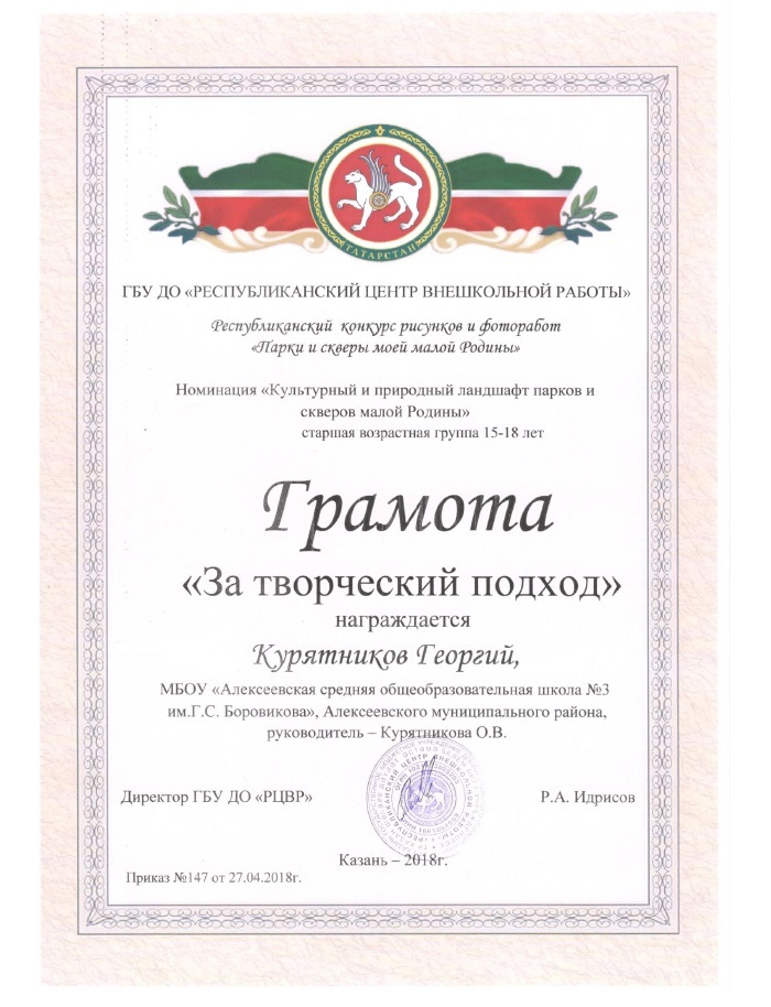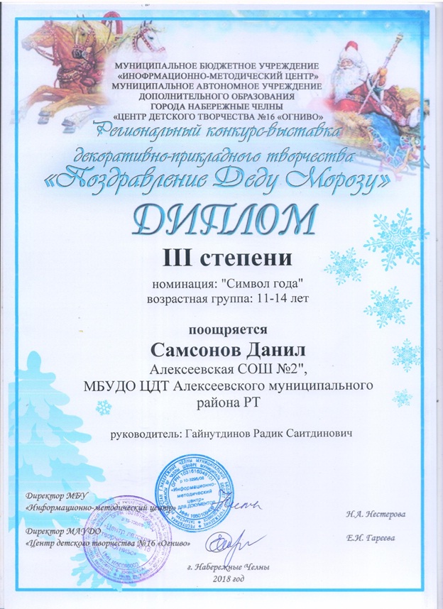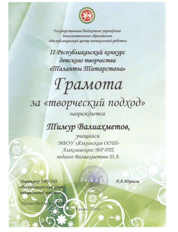 ♦ Валиахметов Тимур, Грамота за творческий подход