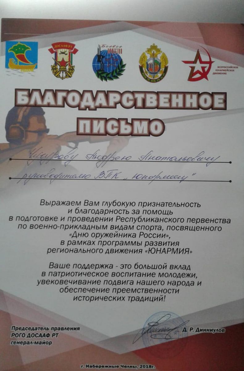 ► Первенство Республики Татарстан по волейболу среди юношей 2006-2007 г.р., Благодарственное письмо