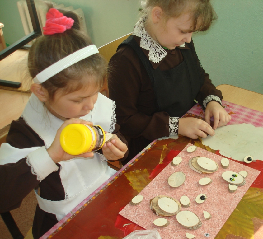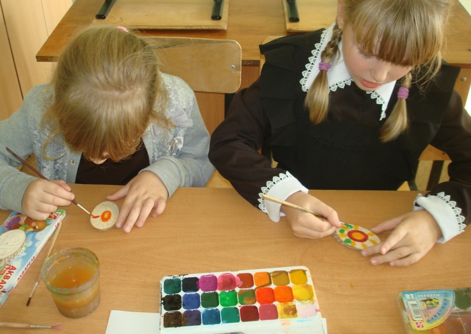 Опубликовано: 25.10.2017Обучающие объединения "Семицветик" под руководством Гатиной С.В. приняли участие в районном конкурсе картин из природного материала "Осеннее настроение". Познакомились с техникой "роспись на спилах дерева" и научились изготавливать картины из спилов деревьев. Во время работы были решены следующие задачи: актуализировать знание детей по свойствам дерева; развивать умение определять и анализировать свойства и качества материала, его особенности; взаимодействие с другими материалами; воспитывать художественный вкус через продуктивную деятельность.