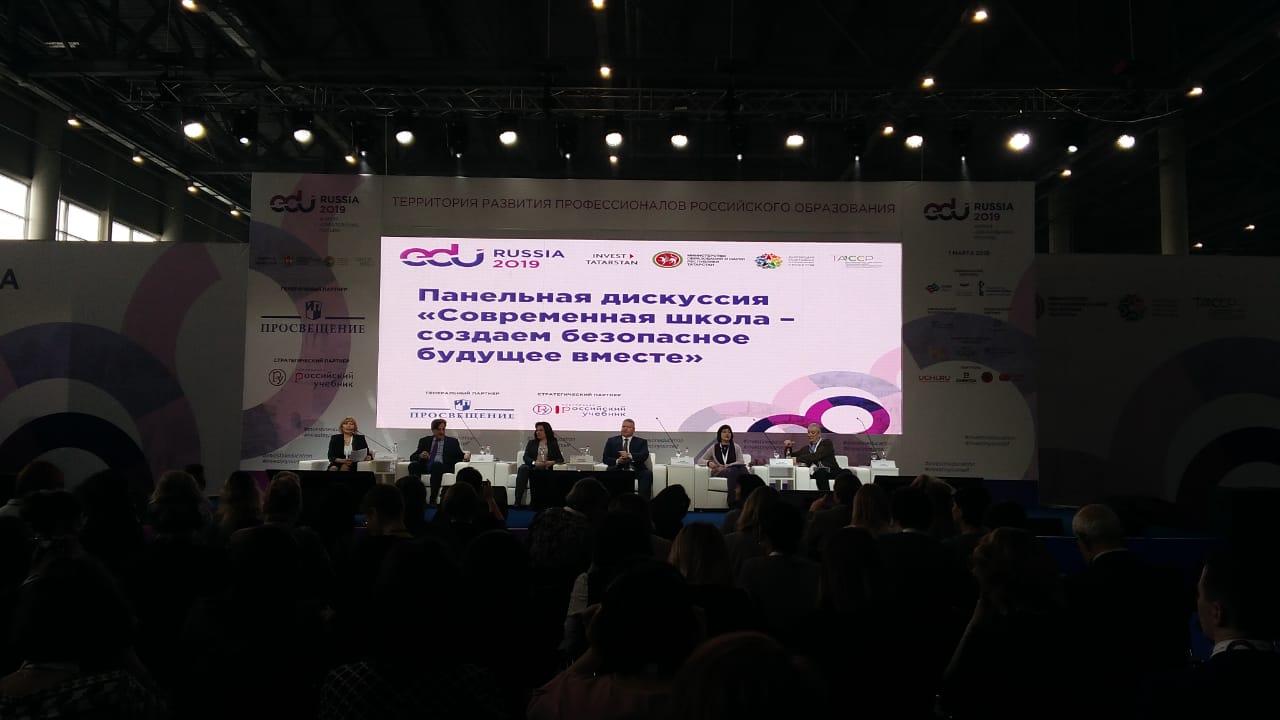 Опубликовано: 28.02.2019С 28 февраля по 1 марта 2019 года на базе международного выставочного центра «Казань Экспо» прошел международный форум Образование России” (EDU Russia). В составе делегации из района на этом Форуме принимал участие директор МБУДО ЦДТ Фассахова Г.Г.. Она участвовала в работе секции «Безопасное образование», модератором которой была Алсу Асадуллина, заместитель министра образования и науки Республики Татарстан. В секции обсуждались вопросы: