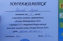 Сегодня ученики нашей школы приняли участие в массовых лыжных соревнованиях "Лыжня Татарстана - 2024" в рамках XLII открытой Всероссийской массовой лыжной гонки "Лыжня России - 2024". Ученица пятого класса Гаврилова Милана заняла первое место! Поздравляем!