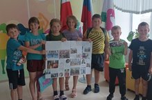 В преддерии праздника День России участники пришкольного лагеря "Мозаика" сделали коллаж "Наша Россия" из вырезок газет и журналов.
