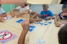 Участники пришкольного лагеря приняли участие в игре по ПДД "Собери дорожный знак" с целью вызвать познавательный интерес детей к изучению правил дорожного движения.