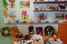 Осень в нашей школе не прошла незаметно. Была подготовлена и оформлена выставка детских работ «Палитра красок». Такие выставки стали традицией и проводятся ежегодно. Участниками были представлены работы, выполненные из различных материалов в различных техниках. Сколько творчества, выдумки, фантазии было в каждой работе! Поделки получились очень оригинальные и разнообразные. Учащиеся с интересом рассматривали экспонаты выставки и с гордостью рассказывали о своей поделке. Огромное спасибо родителям, которые вместе с детьми занимаются творческой деятельностью.