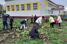 Работники и ученики школы вырастили и собрали богатый урожай красной свеклы на пришкольном участке.