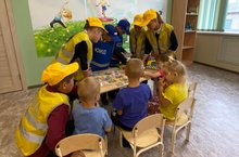 В детском саду прошло выступление агитбригады отряда ЮИД "Школа пешехожных наук". Мероприятие было интересным, дошкольники активно и увлеченно включились в игру. Закончили выступление стихотврением: