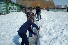 Учащиеся 8 класса оказали помощь пожилой жительнице села Еркиной Е. в очистке от снега придворовой территории дома.