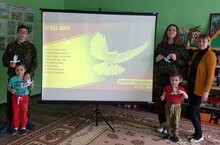 26 мая 2022 года с воспитанниками дошкольной группы педагогом Сапожниковой З.А и ребятами юнармейского отряда "Истина" был проведен урок Победы "Птица мира на защите Родины.