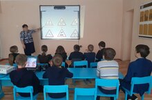 В целях повышения безопасности детского дорожно-транспортного травматизма в школе учащимися ЮИД было проведено мероприятие "Путешествие в страну дорожных знаков" с учащимися 2-3 классов. Мероприятие началось у входа в школьный двор и сопровождалось переходом детей через дорогу по пешеходному переходу. Повторив основные правила движения для пешеходов, дети прошли в класс, где активно и занимательно продолжили мероприятие. Ещё раз повторили дорожные знакии узнали, почему знаки бывают разным цветом и формой. По окончании мероприятия дети сделали вывод, что не стоит подвергать свою жизнь опасности, необходимо соблюдать правила дорожного движения, быть осторожным на дороге.