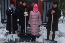 Вот и сегодня, 19 января под руководством Розыевой Г.Р. учащиеся школы (10 - 11класс) организовали очистку памятника павшим войнам ВОВ от снега. Учениками был расчищен подход к памятнику и близлежащая территория, убран снег с постаментов с именами погибших -