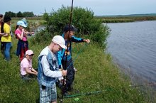 А что это такое — рыбалка? А кто такие рыбаки? Между прочим летом 10 июля в этом году (второе воскресенье июля) отмечается День рыбака. Для многих людей рыбалка это хобби, особое состояние души, способ слияния с природой. А еще рыбалка - это спорт, потому что рыбак должен быть сильным, ловким, внимательным и терпеливым. И сегодня воспитанники пришкольного лагеря труда и отдыха будут тренироваться в рыбацких премудростях, и я вас научу ловить воот такую рыбу!