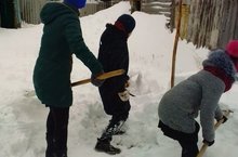 Учащиеся МБОУ Родниковской СОШ после обильных снегопадов оказали помощь пожилым людям в очистке снега около домов.