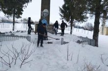 В понедельник, после обильного снегопада, ученики школы, юнармейцы приступили к очистке снега.