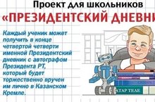 Каждый ученик сможет получить в конце четвертой четверти именной Президентский дневник с автографом Президента Республики Татарстан Рустама Минниханова, который будет торжественно вручён им лично в Казанском Кремле.