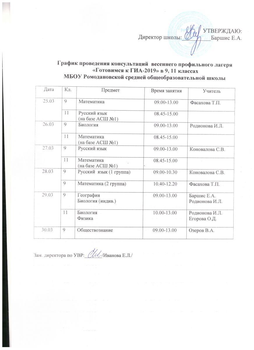График проведения консультаций весеннего профильного лагеря "Готовимся к ГИА-2019"