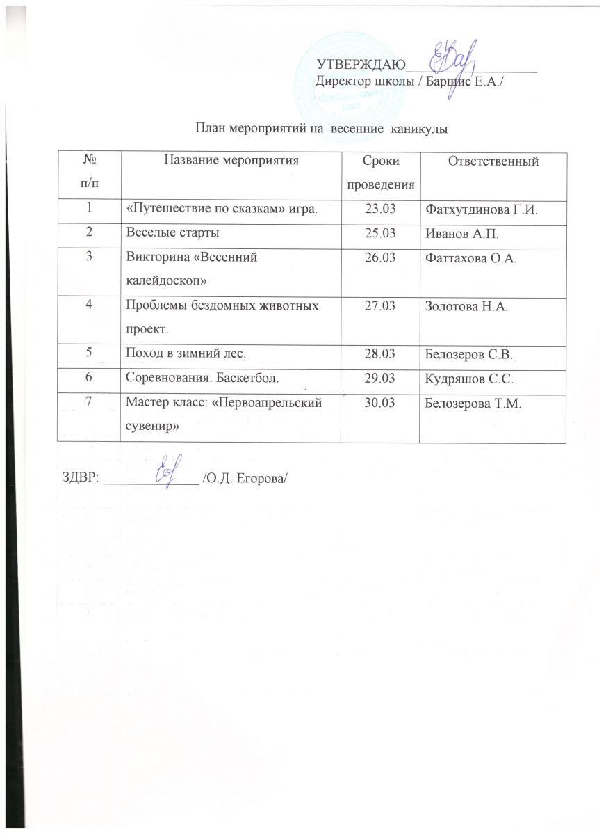 План мероприятий на весенние каникулы