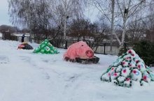 Территория нашей школы погрузилась в новогоднюю сказку. В один миг на радость детворе выросли снежные фигуры: свинка - символ нового 2019 года, герои любого нового года Дед Мороз и Снегурочка, и другие сказочные зверюшки.