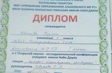 21 апреля 2018 года на базе МБОУ Базарной-Матакской гимназии имени Наби Даули Алькеевского МР РТ прошел очный тур V Открытой научно - исследовательской конференции учащихся имени Наби Даули. Ученица 6 класса #РомодановскойСОШ занял 1 место в секции "История, обществознание, краеведение" Поздравляем!!!