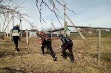 Для поддержания порядка на школьной территории продолжается уборка мусора, сухой листвы и травы.