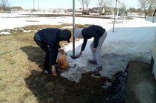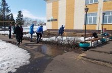На улице побежали ручьи, тает снег. Появились первые "подснежники". Учащиеся школы совместно с учителями поддерживают порядок на территории школы!