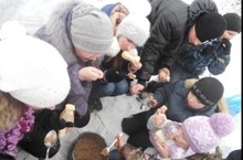 А вместе с ними, классный руководитель Егорова О.Д., учитель физкультуры Белозеров С.В. и учитель ОБЖ Иванов А.П. Взяв с собой гречки, тушенки, воды и хорошего настроения мы отправились в путь. По дороге часто встречались препятствия: сугробы, овраги которые мы мужественно переезжали, проходили, переползали…..