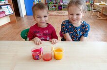 В дошкольной группе прошла пятиминутка: «Час науки» дети с удовольствием и большим интересом посмотрели эксперимент «Поднимающаяся вода»! Сначала мы подкрасили воду в стаканчиках , затем приготовили жгутики из салфеток , опустили в воду! И так эксперимент пошел! Вода впитывалась по волокнам салфеток и поэтому поднималась , под действием силы тяжести она опускалась в пустой стакан. И в конце эксперимента пустой стакан наполнялся подкрашенной водой!