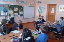 С учащимися прошла интерактивная игра " Юные математики". Перед игрой дети разделились на две сборные команды. Далее участники представили свои команды (Треугольники и Линейки) и познакомились с темами заданий. Задания игры были направлены на развитие логического мышления, учили рассуждать, воспитывали любовь к математике и развивали чувство коллективизма.