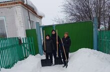 Учащиеся 7-го класса провели субботник по уборке снега возле домов пожилых жителей нашего села. Ребята помогли Каримовой Р.Х. в уборке придомовой территории от снега.