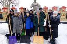 В рамках месячника военно - патриотической работы Юнармейцы почистили территорию памятника под руководством Мазидуллина А.А.