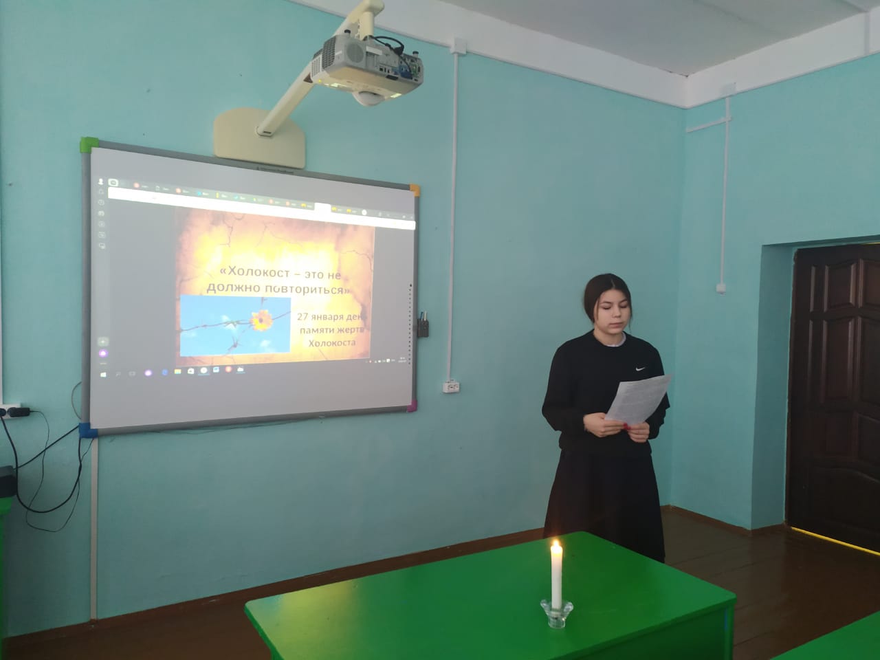 В рамках недели Памяти жертв Холокоста и советских солдат, освободивших Аушвиц (Освенцим), в школе проводился ряд мероприятий, посвященных этой дате. Для учащихся 5-9 классов была проведен урок истории "Холокост – память поколений".