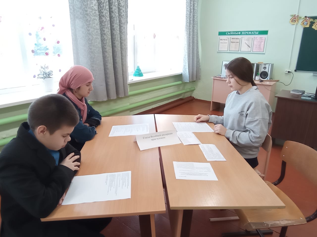 Сегодня в рамках проведения акции Всероссийского единого урока «Права человека» учитель истории и обществознания Камалов А.Ш. провел с учащимися 6-9 классов урок -викторину на тему «Человеческая роль в декларации прав человека».