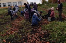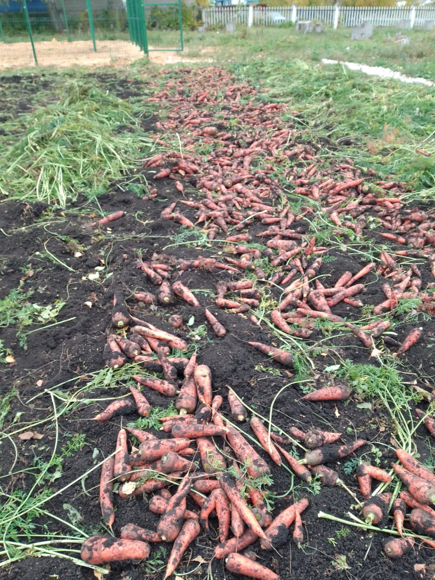 Осень - время сбора урожая. Мы, вооружившись перчатками, вёдрами отправились на пришкольный участок, собирать урожай. Все ребята, вместе с педагогами школы отнеслись к работе с ответственностью, старательно работали и собрали большой урожай моркови.