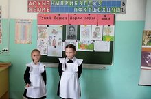 В школе прошла торжественная линейка, посвященная поднятию Государственных флагов Российской Федерации и Республики Татарстан с озвучиванием мелодий гимнов России и Татарстана.