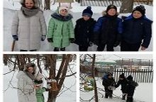 Ученики 2 класса своими руками сделали кормушки для птиц и развесили их на ветках деревьев в территории школы