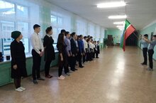 Сегодня школьники начали утро понедельника с торжественной церемонии поднятия двух государственных флагов - России и Татарстана - под исполнение двух гимнов.