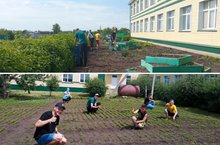 Мәктәп территориясен төзекләндерү һәм яшелләндерү акциясе кысаларында лагерьга йөрүче балалар куакларны карадылар, мәктәп янындагы клумбаларда эшләделәр.